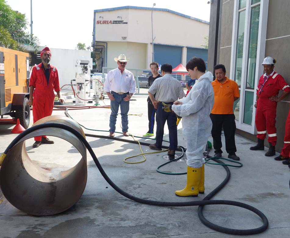 期間,系統(tǒng)學(xué)習(xí)了石榴石的噴砂技術(shù)要領(lǐng)、了解了各種新型的噴砂設(shè)備、部件及使用方法,進(jìn)行了RZG石榴石噴砂磨料同澳大利亞石榴石、印度石榴石的實際噴砂對比,進(jìn)行了RZG石榴石噴砂磨料同銅渣(也叫銅礦砂)的實際噴砂對比。